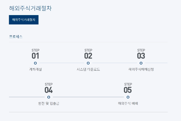 - 증권사 앱(MTS) 실행 후, 해외 주식 메뉴로 이동
